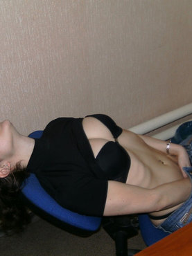 Девушка больше не могла терпеть, ей очень сильно хотелось заняться сексом. Поэтому она пришла к бойфренду прямо на работу. Рабочий день еще не закончился, но многие сотрудники уже ушли домой. Парень был один в кабинете и девка предложила потрахаться на полу. Отказать красотке с большими сиськами мужик не мог, поэтому и поимел ее без презика.