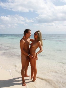 Голые девушки играют телами на пляже и в воде