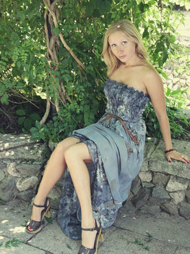 Молоденькая блондинка раздевается в саду