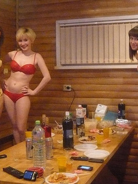 Толпа пьяных девушек устроила лесбийскую оргию в сауне