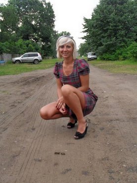 Очаровательная блондинка гуляет по городу без нижнего белья
