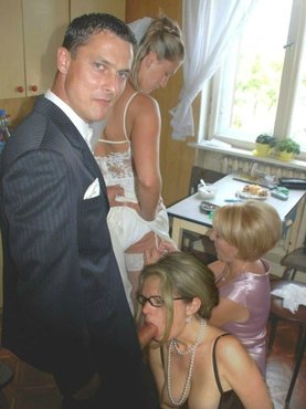 Девушка, сидя на коленках, делает минет нескольким мужчинам